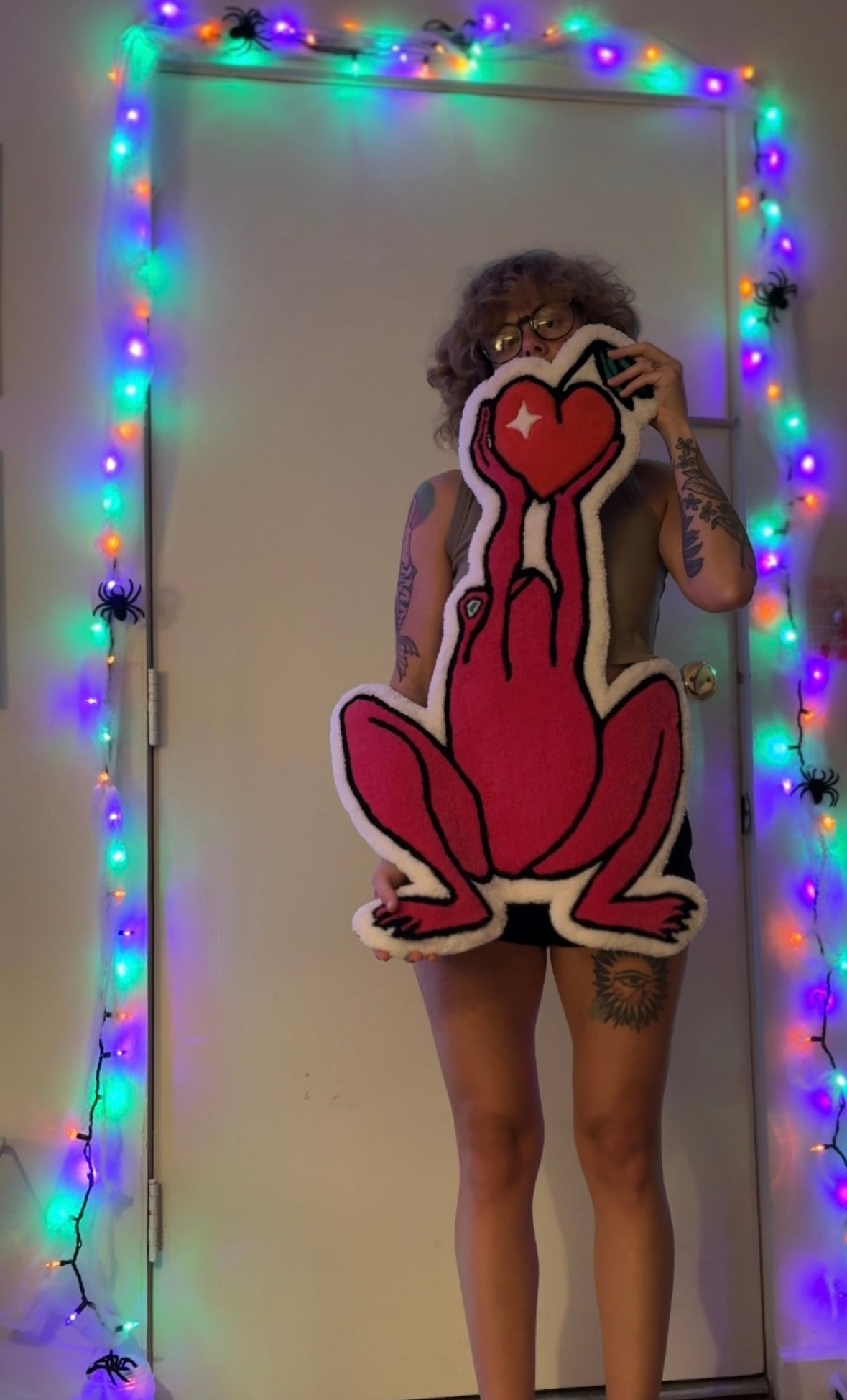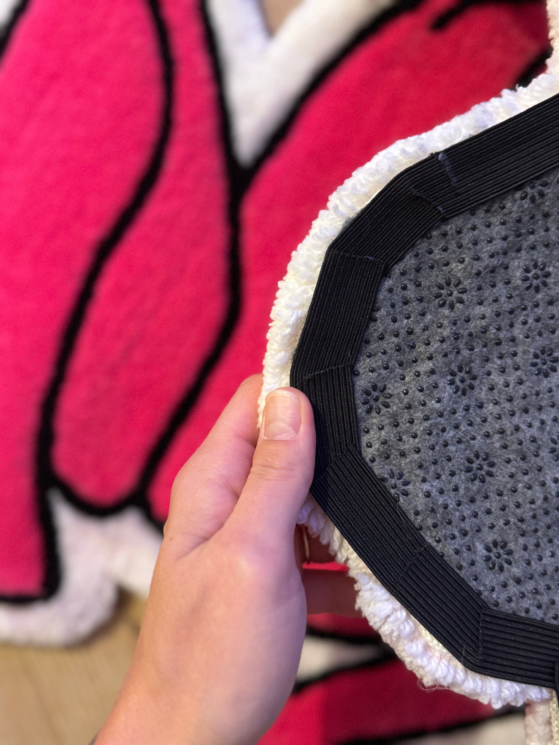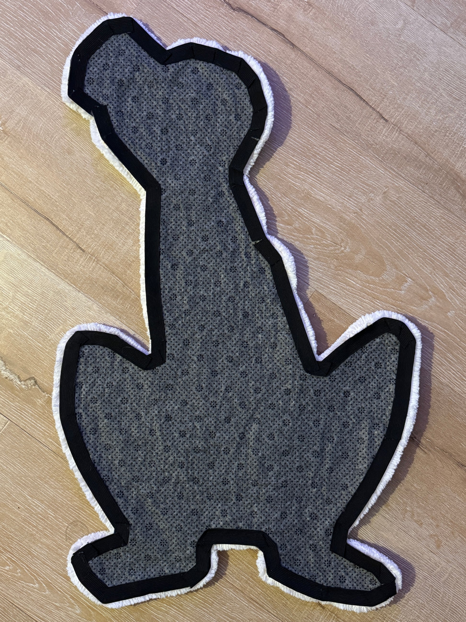 Hand tufted cut pile acrylic yarn rug. All of my rugs are original designs, made in my home studio. Durable adhesive and quality non-slip backing ensure this rug lives a long life. I recommend any acrylic rugs not be placed in high foot traffic areas. Spot clean only with mild soap and water, do not wash in machine or soak. High power vacuum not recommended. Simply lint roll, or hand held vacuum is best. May also be hung as a tapestry for a unique 3D statement piece.